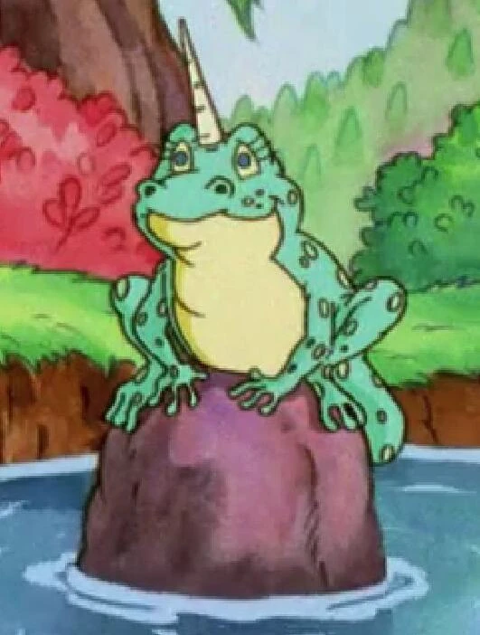 Hoppy is a tailed frog with a horn like a unicorn, hence his species' name.